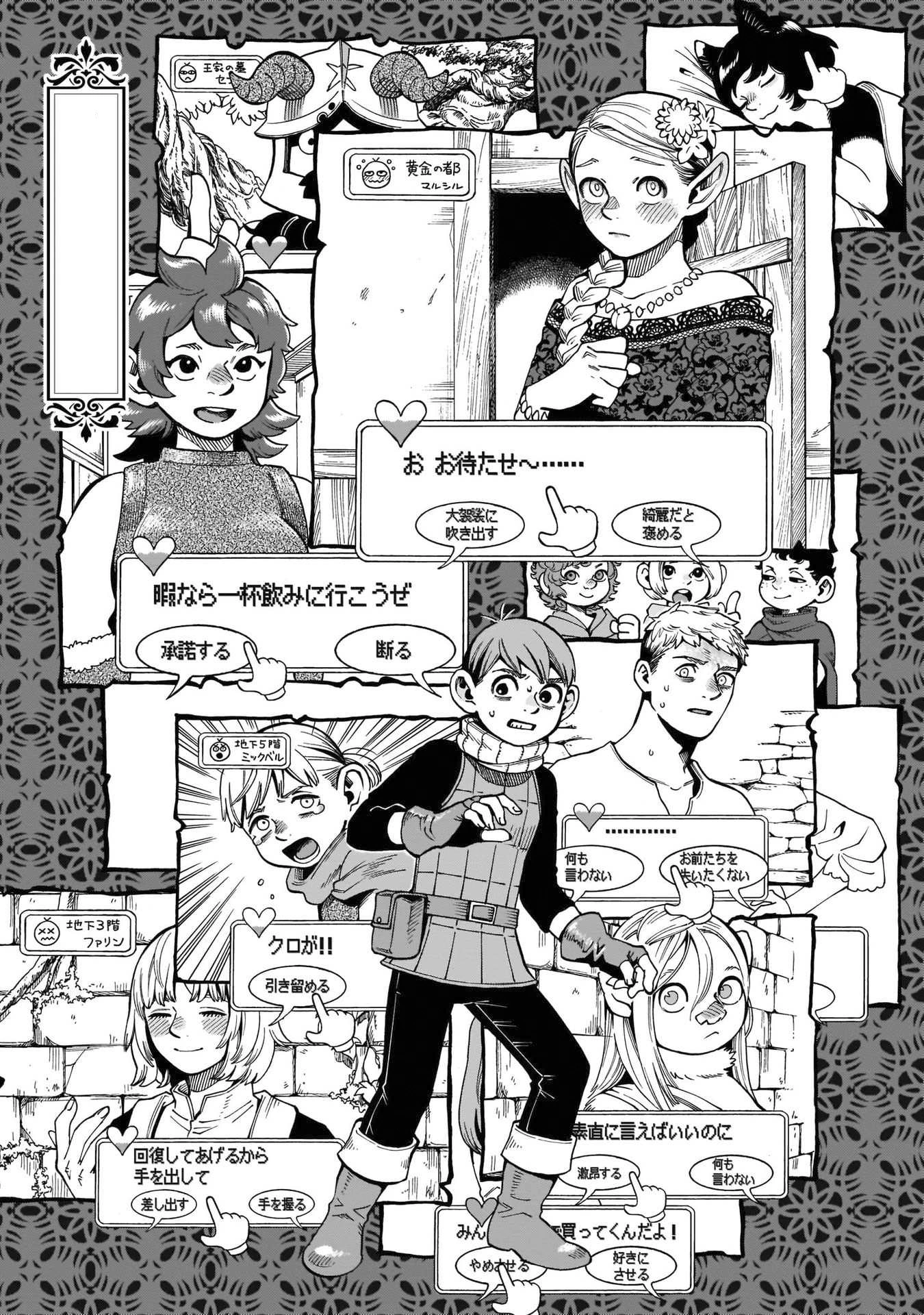 Laios’ party attempts to hunt a bicorn. Bicorns are said to only pursue corrupted men - the party then indulges in various sins in order to corrupt themselves. After defeating the Bicorn, Chilchuck tells the truth about his past.